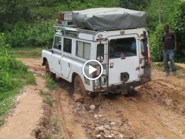 Ndoto had been nicely straddling an eroded ditch (a ditch deep enough to resemble a mechanic’s bay) in the center of the road when one wall suddenly collapsed inward dropping the passenger side of the Landy three feet down into the rut. Ndoto was in a rut so deep that the right front tire was completely up in the air and the back wheel was splayed out at such a weird angle that I thought we were done for good. No tow truck was coming to rescue us here. As we scrabbled our way out of the vehicle to survey the situation people began appearing from the nearby village. They wanted to help but they wanted money first.  Much discussion in French ensued with Scott interjecting, “First dig, then pay, see?” every few minutes. Once again I felt a little nervous. So many people surrounding Ndoto with her skirt up. And I was frustrated. Why all the talking when we were just getting more bogged by the minute? “Okay! I’ll do it myself,” I announced to the crowd and I began carrying stones and chucking them under the car near the tires. Dead silence. Africans can’t stand to see a muzungu woman toiling while they stand idle. Scott said, “Tris if you would just sit on the hood on the driver's side I think we can drive out of here.” It was at this moment that the Prado rambled up and stopped. I tossed another stone under the car and walked over to the occupants – four well-dressed Burundians on their way to Bujumbura. “Bonjour. Ca va? Parlez vous Anglais?” I asked. Their English was perfect. Ever the optimist I asked, “How is the road in the direction you have come?”